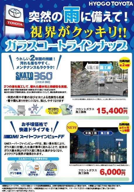 • フロントガラス撥水コート
