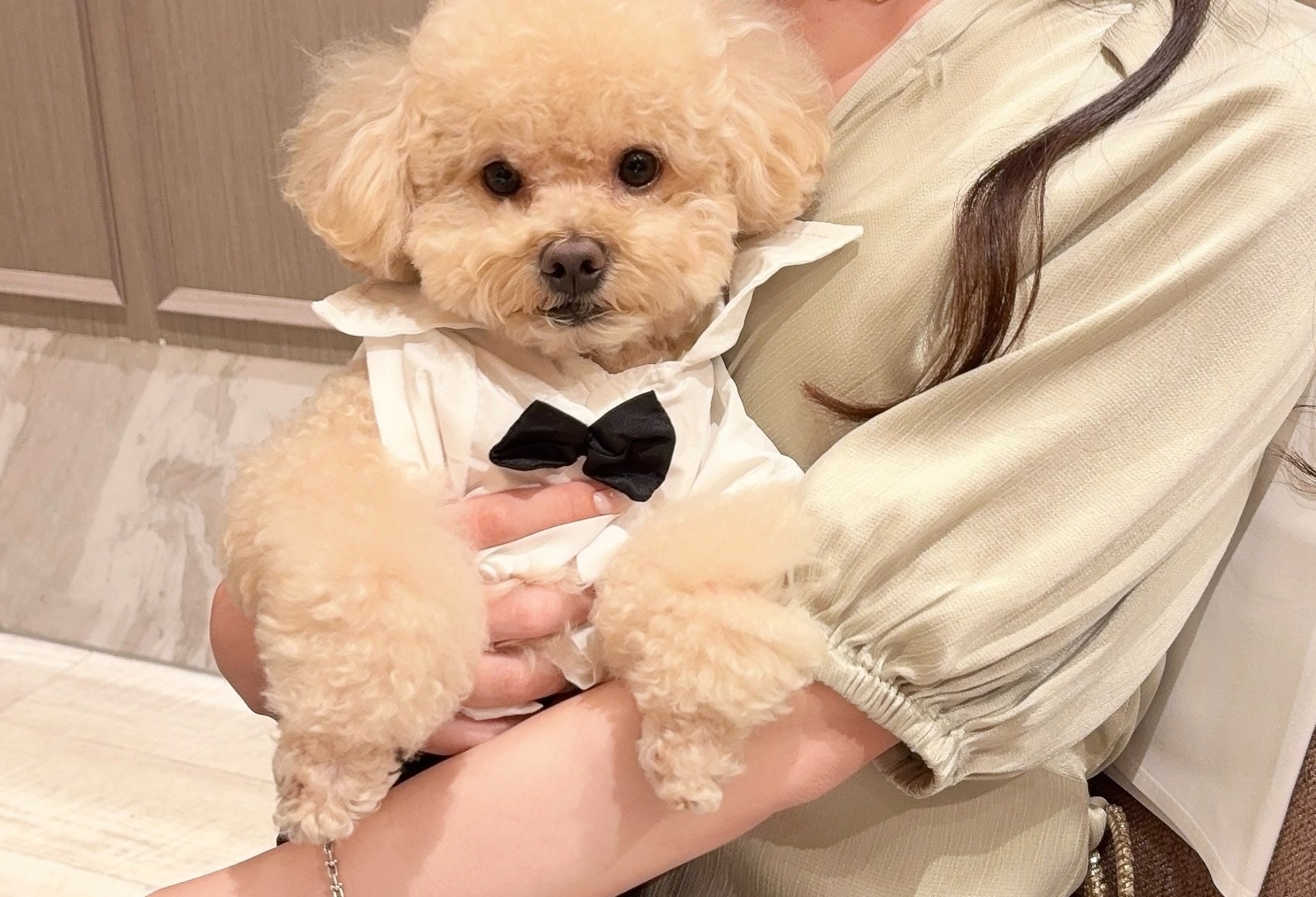 犬が大好きな夫婦だったので披露宴会場も愛犬2匹が走り回っていて、みんなの膝の上に飛び乗っていました🐶💛愛嬌満載の可愛すぎるワンちゃんでした😊