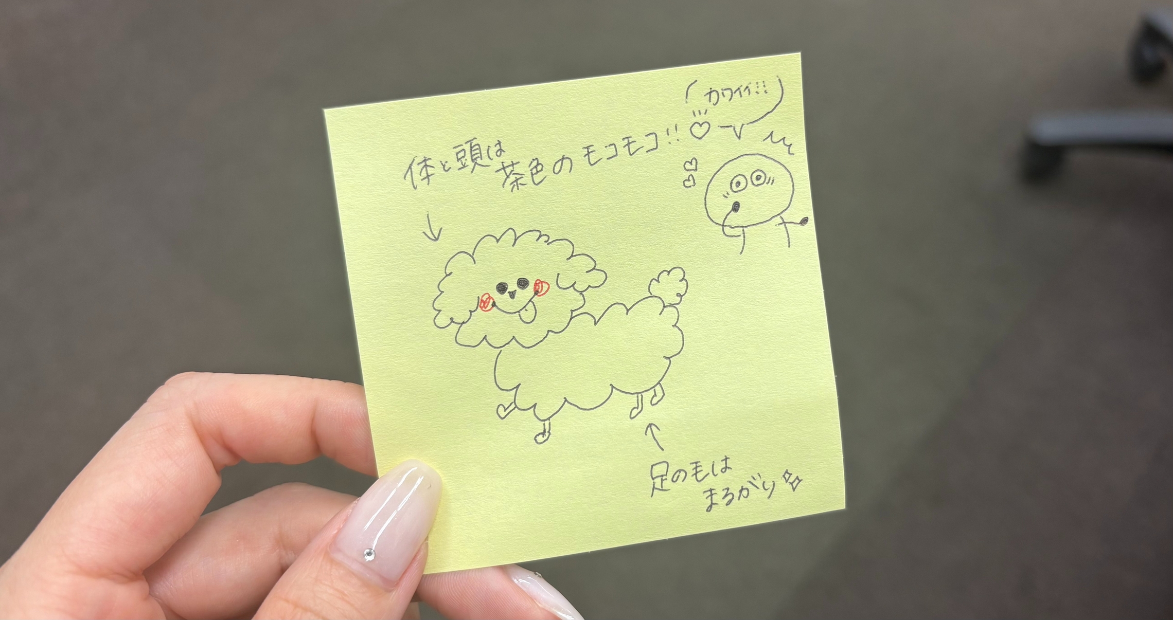 そして朝の通勤中にも、足がまるがりで体がもこもこまんまるのトイプードルを見つけ、、、👀