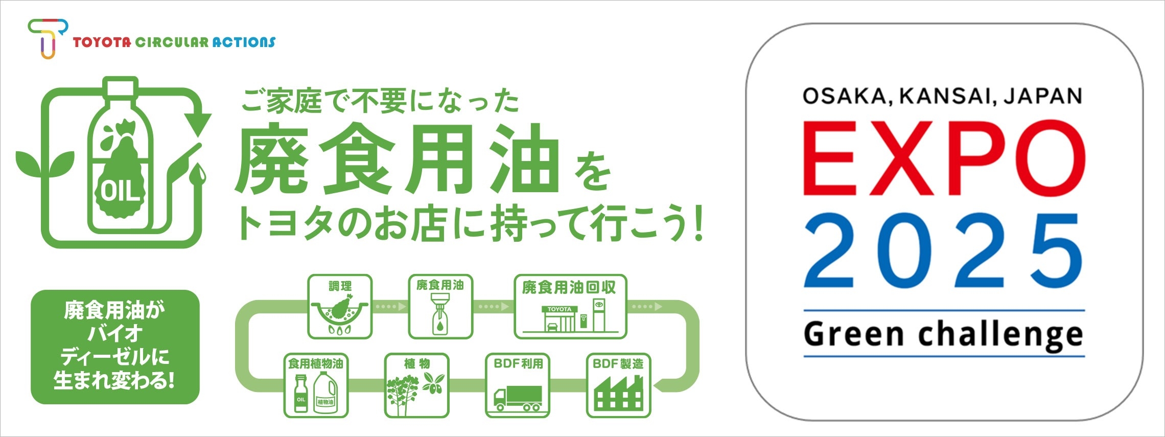 大阪・関西万博に合わせて実施しております川西店での廃食用油のリサイクル回収の受付は10月13日までとなっております🚙