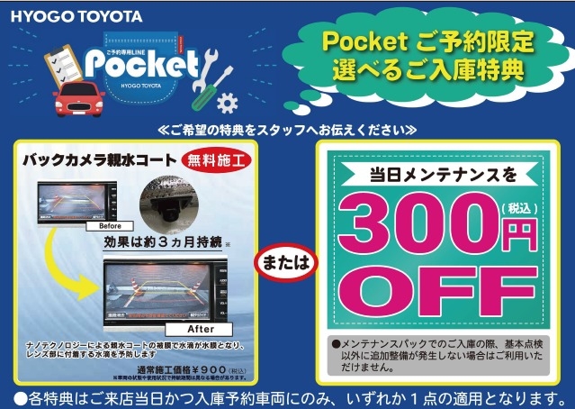 🐶ポケット点検予約🐶 2025.10.10 みなさまこんにちは😊😊😊💕 兵庫トヨタ三田店です🌈💕 今回はポケットでご予約いただくと特典がついてくるお知らせです🥰🥰🥰 バックカメラ親水コート or 当日メンテナンス300円オフ どちらかをプレゼントしちゃいます🎁🎁🎁 当日限定のご予約のお客様に限ります⚠ 特典ご利用の方はご予約時にその他ご要望欄に特典利用とご入力ください✨ 是非このお得な機会にご活用くださいっ🥰🥰🥰 ポケットの登録はこちらから🥰 前の記事へ 店舗ブログ一覧に戻る 次の記事へ
