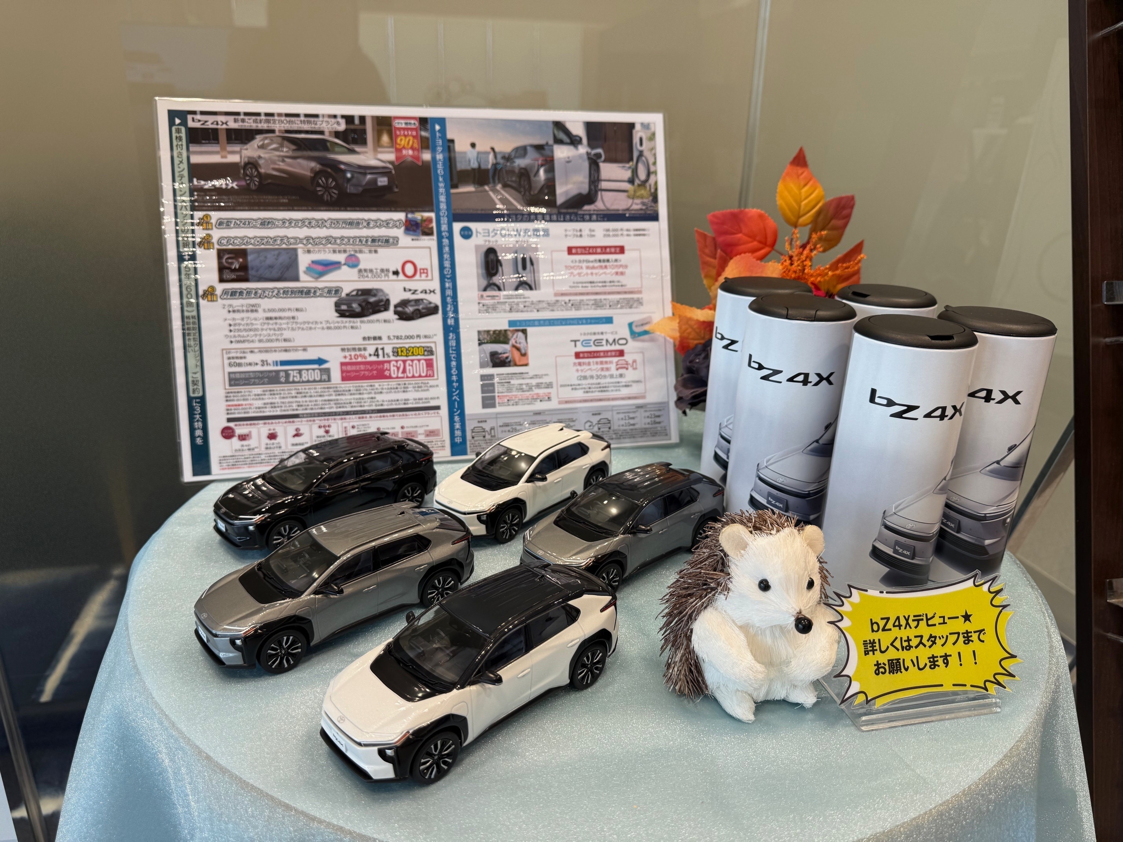 ⭐bZ4X⭐一部改良 2025.10.11 皆様こんにちは😊 10月9日に電気自動車の『bZ4X』が一部改良いたしました🚙✨ 姫路店の入り口にはbZ4Xコーナーを設置しております🍀 ミニカーなどを展示しておりますので ご来店の際はぜひご覧くださいませ😊 詳しくはスタッフまでお願いいたします✨ 前の記事へ 店舗ブログ一覧に戻る 次の記事へ