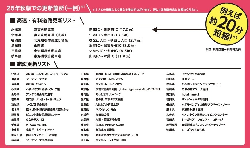 他にも様々な施設や高速道路・有料道路が更新されています!