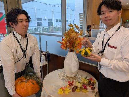 当店もショールームに秋の装飾として、大きなかぼちゃと星形のかわいいかぼちゃを飾っております🎃