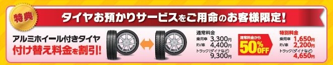 アルミホイール付きタイヤの付け替え料金が半額に!!!👀✨