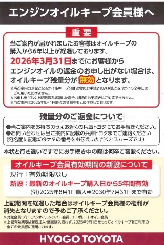 そして2つめ「オイル会員様ご購入から5年未満のお客様」へは下記画像のご案内をさせていただいております!