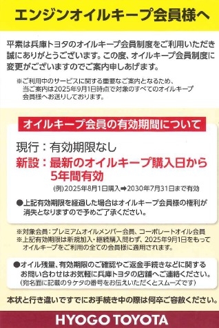 以前までは「オイル会員様の有効期限なし」だったのですが、現在は「オイル会員様の有効期限はご購入から5年間」となっております!!!