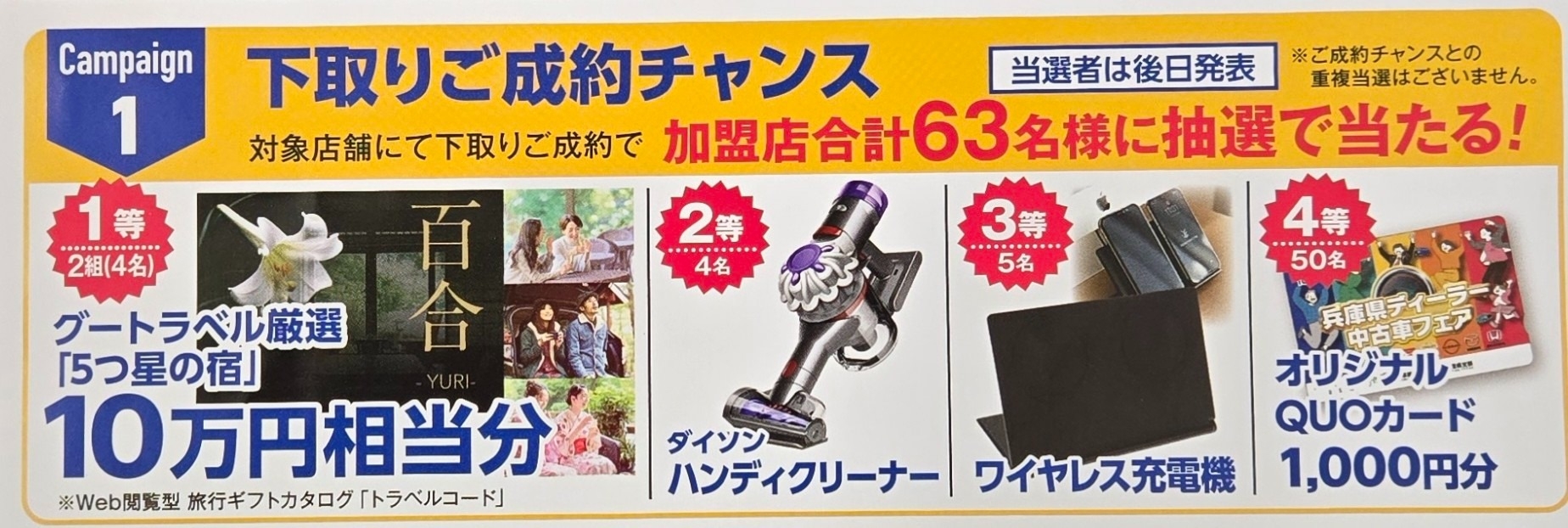 フェア期間中対象の店舗で中古車をご成約・下取りされたお客様に2つのチャンス‼️