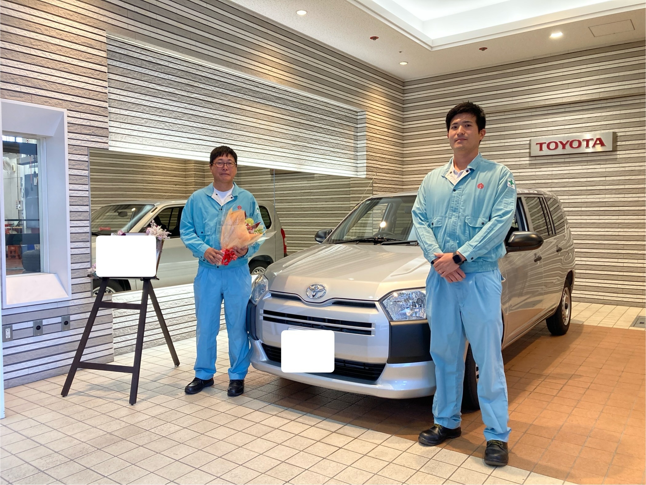 『この度は新車ご納車おめでとうございます!!長い期間ご愛顧いただきありがとうございます。担当変更等でご不便をおかけし申し訳ございません。これからも末永くよろしくお願いします。』