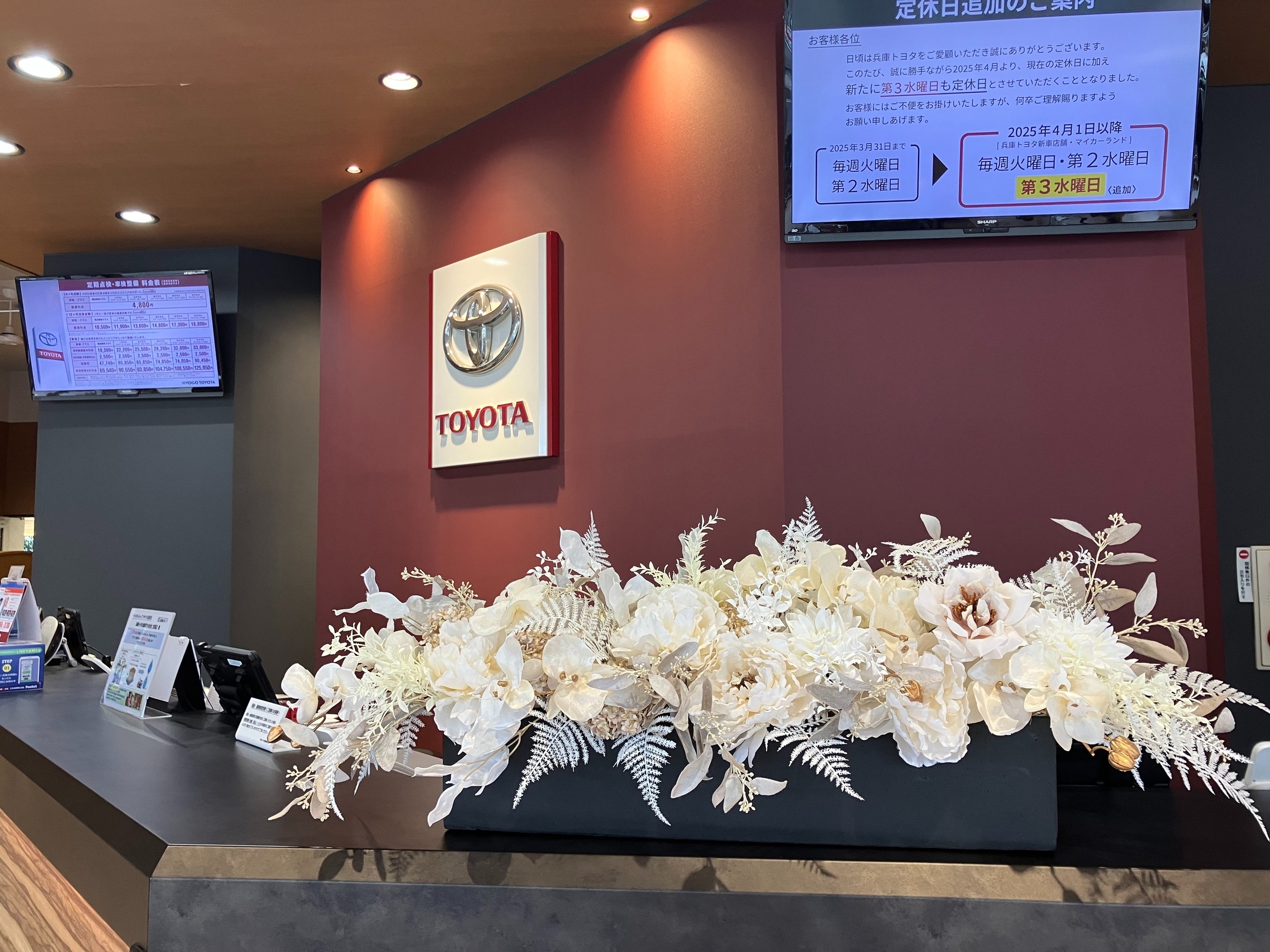 宝塚、冬⛄ 2025.12.22 こんにちは😊 冬が大好きな私、11月からクリスマスソングを聞いてうきうきしております♪ 宝塚店のショールームの装飾も冬バージョンになっております⛄ 新入りのかわいい飾りも毎日きらきらしててかわいい💙 👇新入りたち 入り口にもお花を新しく作っていただきました。 アヴィニョンのりゅうさまいつもありがとうございます♡ というわけで兵庫トヨタのYouTubeにショールームの動画をアップしました❆ 是非ご覧ください👀 前の記事へ 店舗ブログ一覧に戻る 次の記事へ