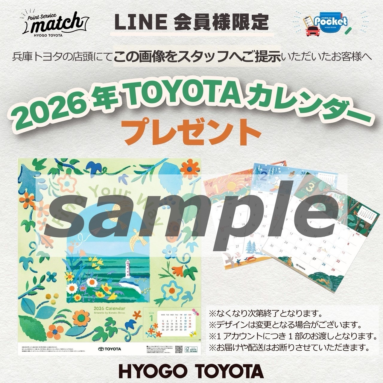 📣兵庫トヨタLINE(pocket・match)会員様にお渡しさせていただいております📅