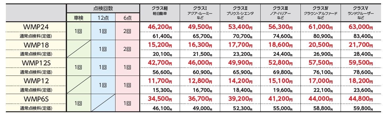 12ヶ月点検・6ヶ月点検がセットになったパックなど