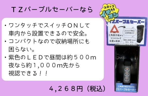 (※高速道路でのトラブルで緊急停止した場合、停止表示器材の表示義務があり