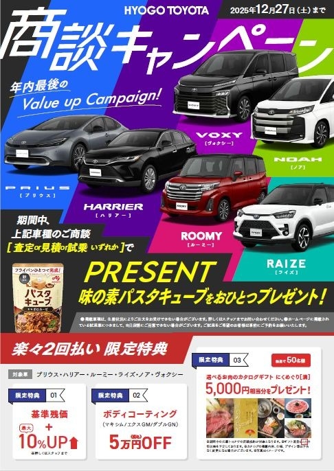 その際に本日12月6日に兵庫トヨタのLINEに配信されているクーポンをご提示ください!!!