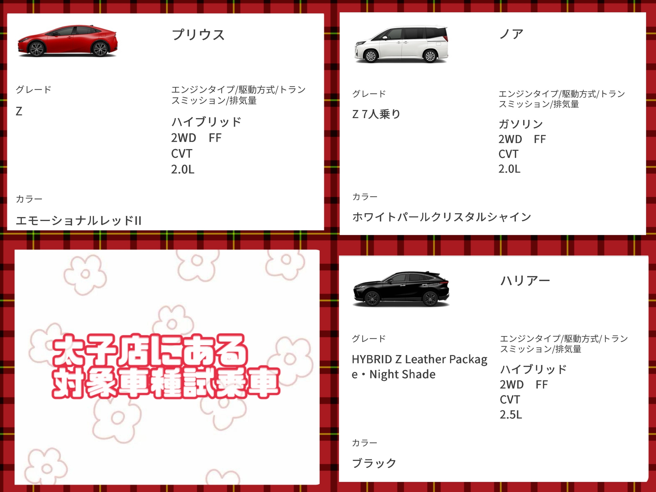(太子店に常設していない車種は多店舗から取り寄せ可能です)