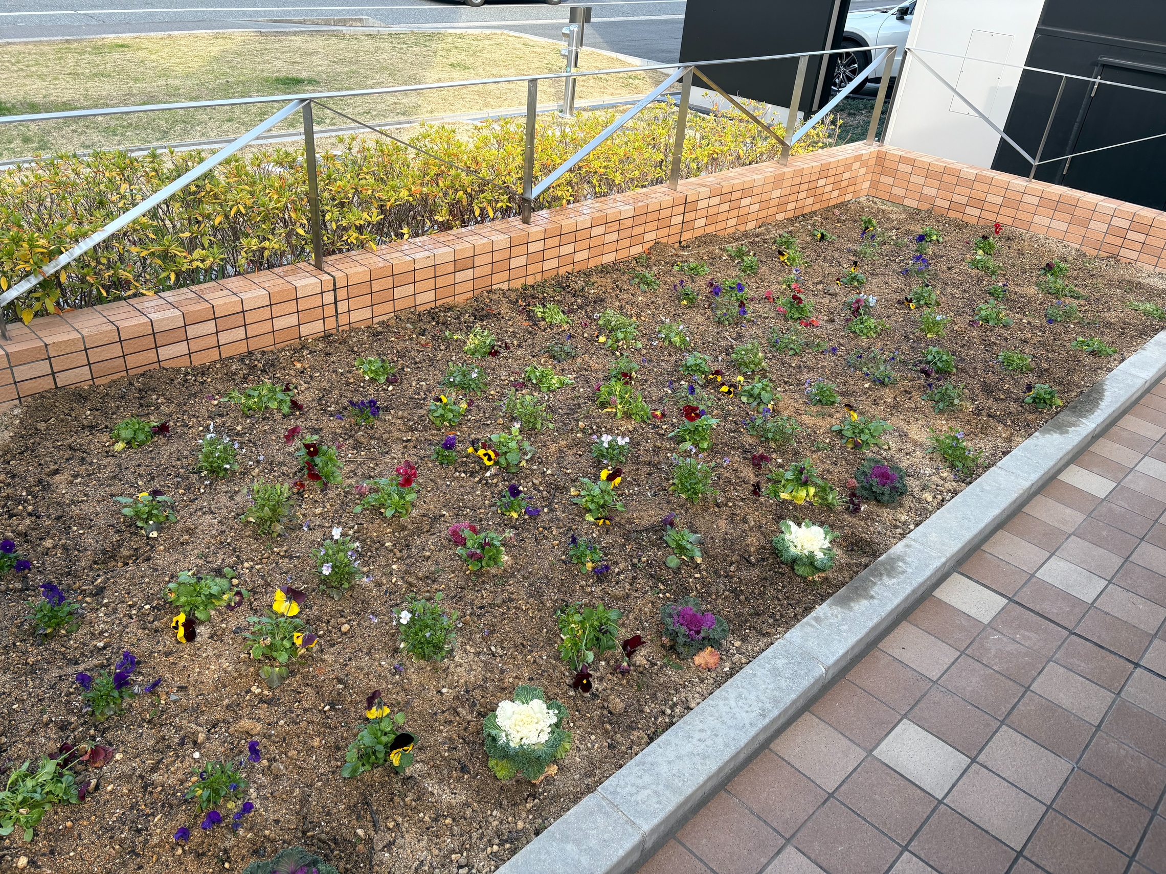 先日、花壇のお花を冬にきれいに咲く『パンジー』『ビオラ』、そしてお正月にピッタリ『葉牡丹』に植替えましたよ😃