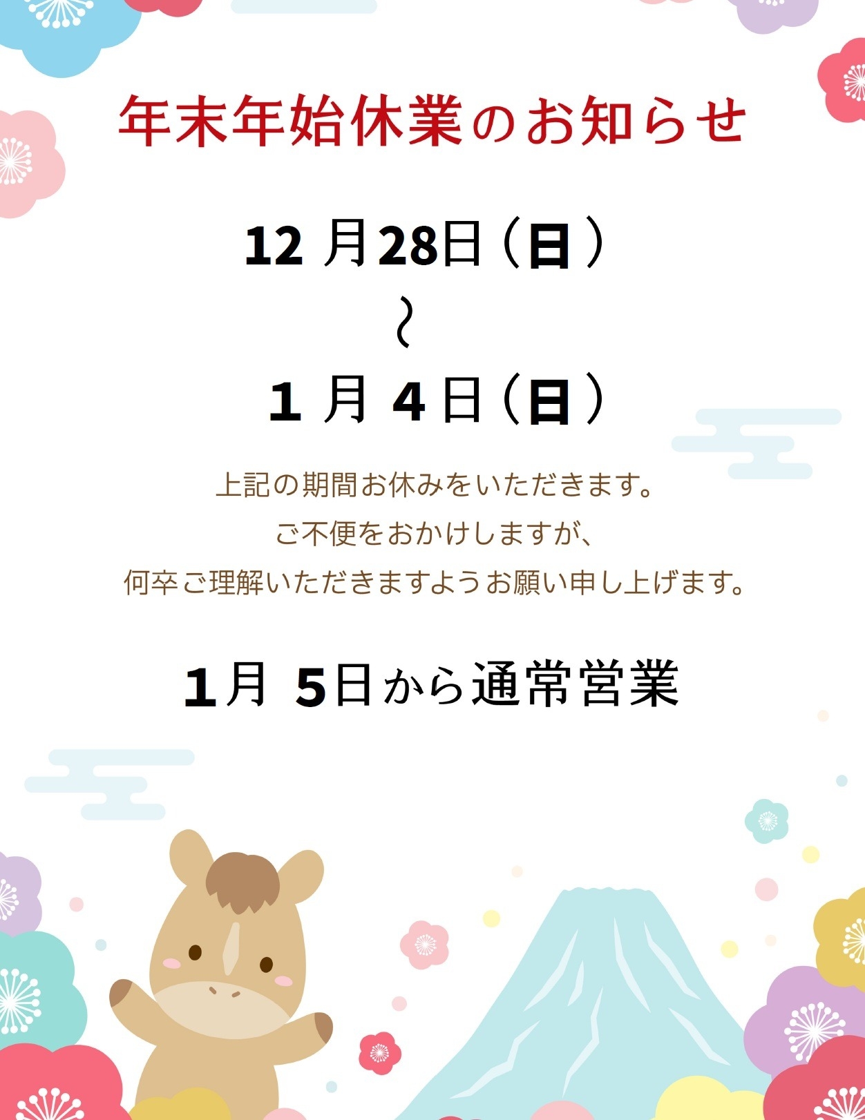 年末年始休業日のご案内 2025.12.27 いつも伊丹昆陽店のブログご覧いただきありがとうございます(*'ω'*) 年末年始休業日のご案内です。 休業期間中のお車の事故・故障のご相談は JAF 📞0570-00-8139 又は短縮ダイヤル 📞#8139 をご利用ください。 年始は1月5日(月)より通常営業いたします 年始は新春フェアを開催いたします!! ぜひお立ち寄りください(・ω・)ノ ☟休業期間中もLINEよりご予約いただけます☟ 前の記事へ 店舗ブログ一覧に戻る 次の記事へ