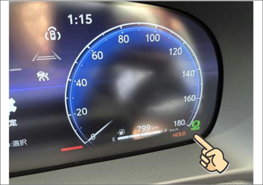 ONにするとメーターディスプレイにホールドマークが点灯!!