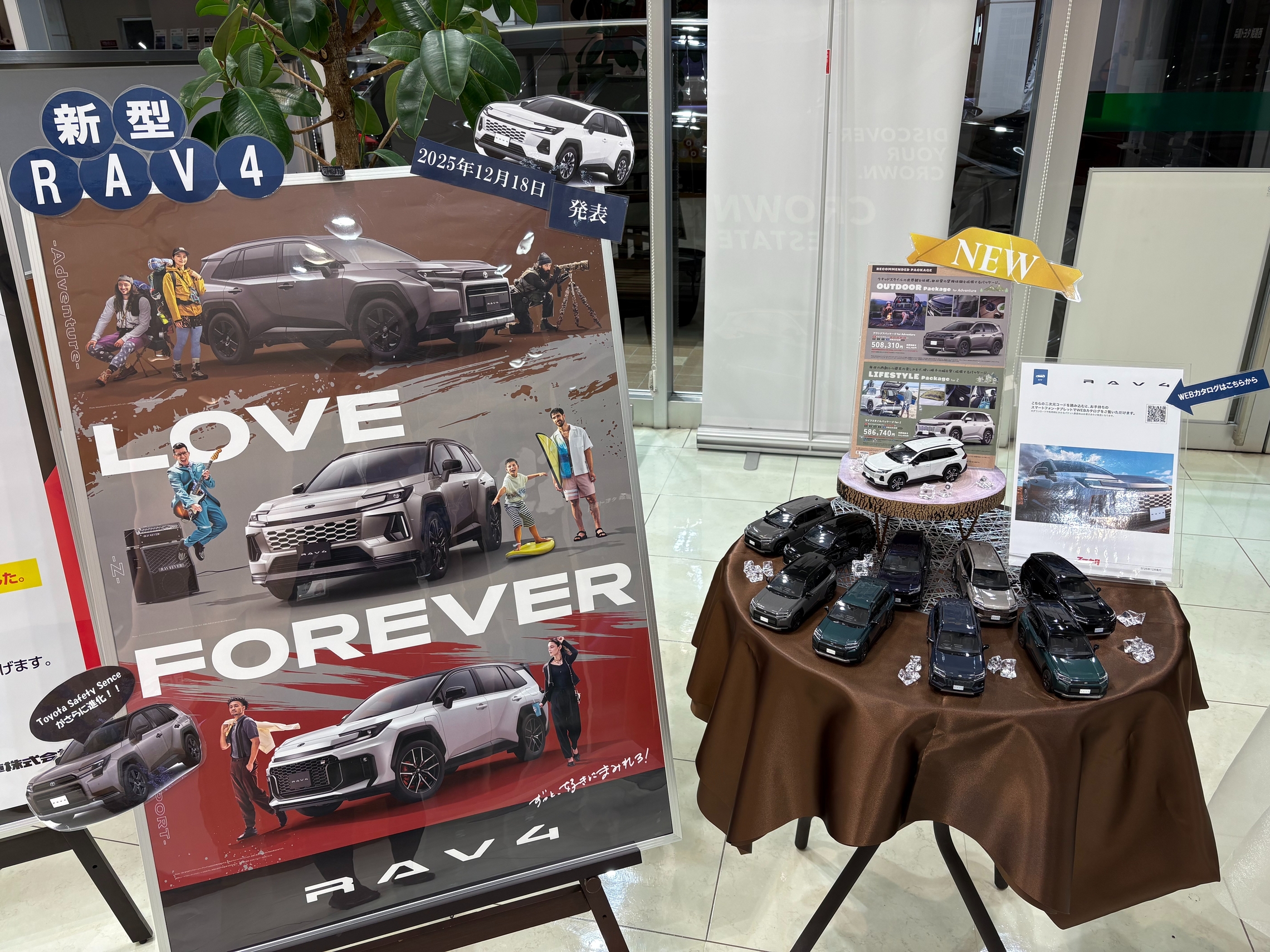 新型RAV4発表🚗✨ 2025.12.18 こんにちは! 兵庫トヨタ姫路西店です🎵 本日新型RAV4が発表されました!! 従来のモデルと比べると… 一目見て分かるのが 外観のデザインが一新されました✨ 販売方法や車種情報など 詳しくはスタッフまでお問い合わせください💖 店舗入り口にRAV4コーナーも ございますのでご来店時チェックしてみてくださいね🌟 皆様のご来店お待ちしております💖 前の記事へ 店舗ブログ一覧に戻る 次の記事へ
