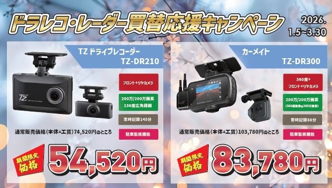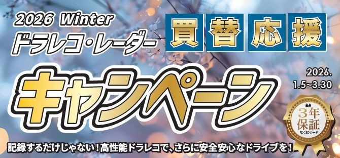 1月5日から3月30日まで「ドライブレコーダー・レーダー買い替えキャンペーン」を実施中です!