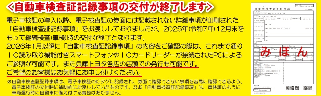 🌟自動車検査証記録事項の交付が終了します🌟
