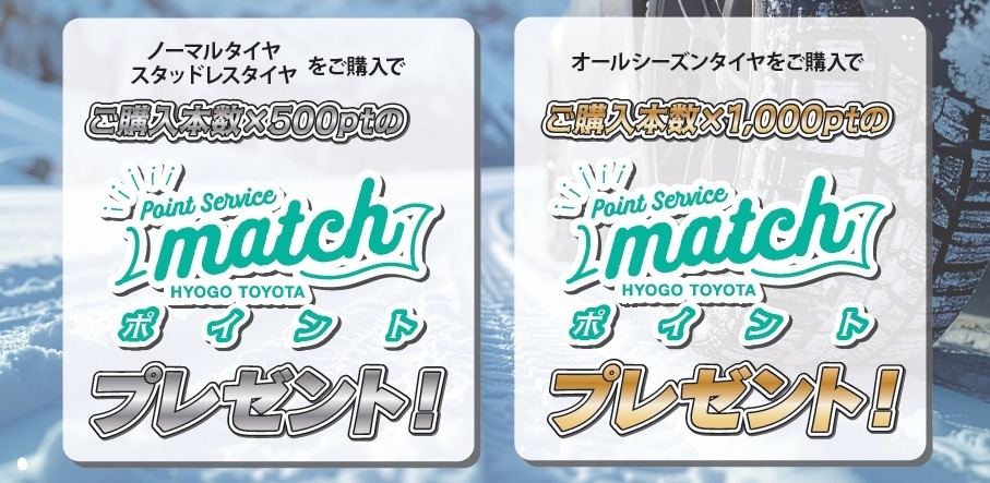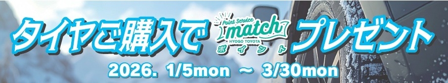 ただいま兵庫トヨタではマッチ会員様がタイヤをご購入いただいた場合にポイントをプレゼントしております🎁