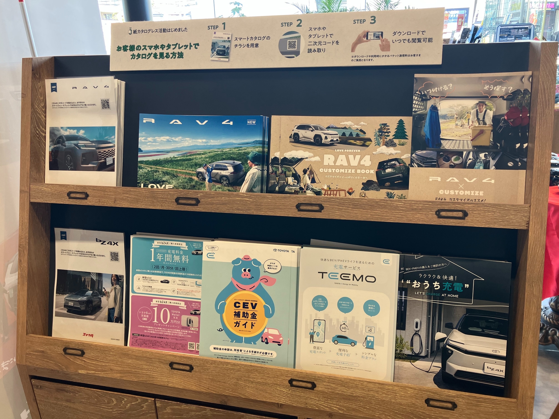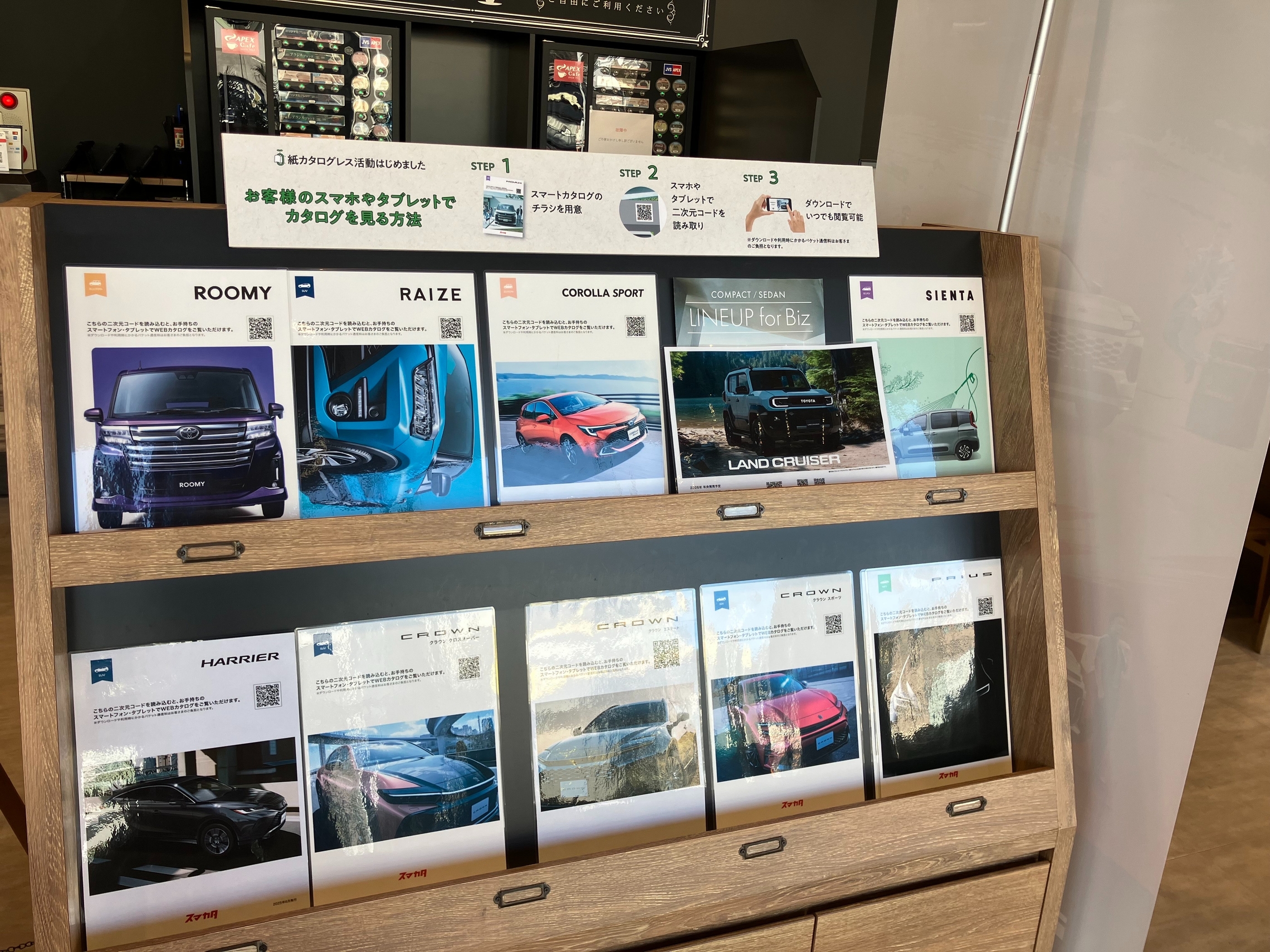 カタログコーナーにあるQRコードを読み取ると、お手持ちのスマホやタブレットでカタログをご覧いただくことができます👀✨