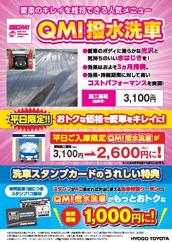 QMI撥水洗車 ¥3100(土日祝)➡ 平日 ¥2600