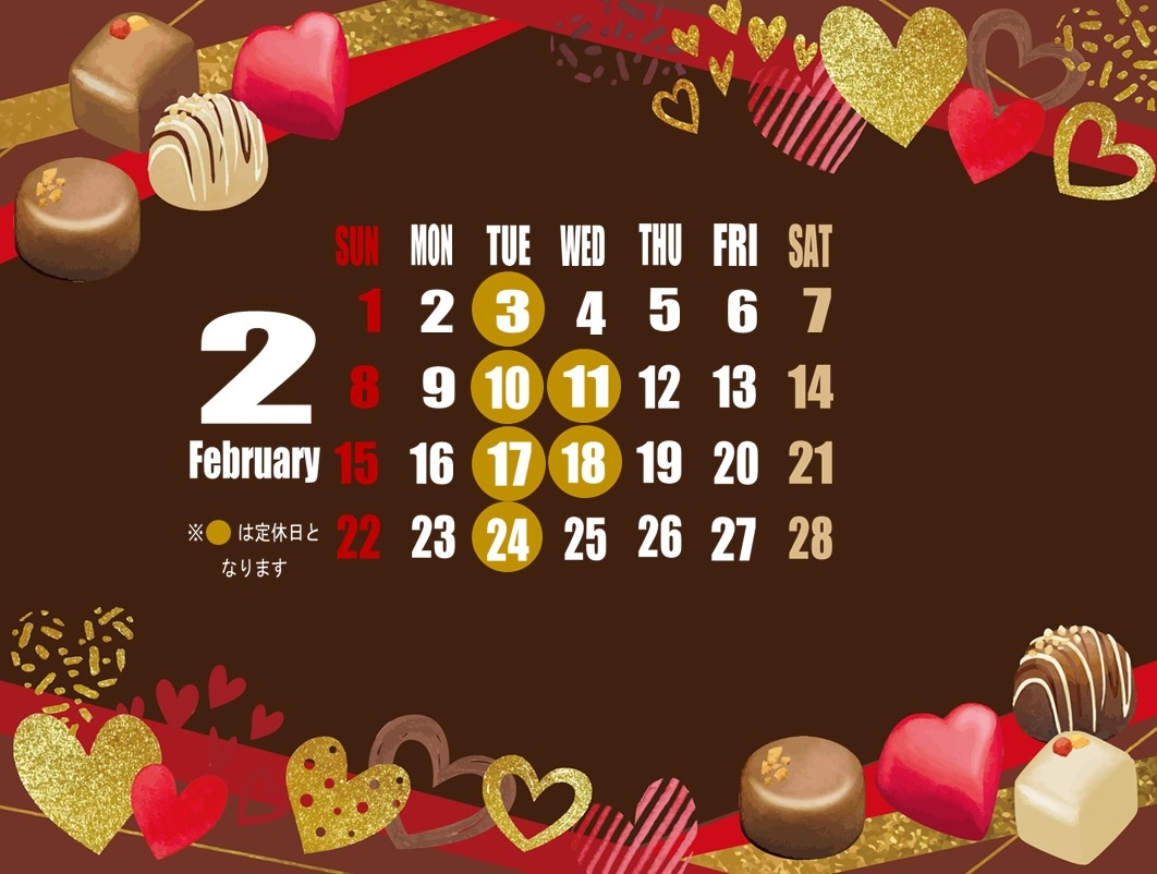 🍫 2月定休日のご案内 🍫