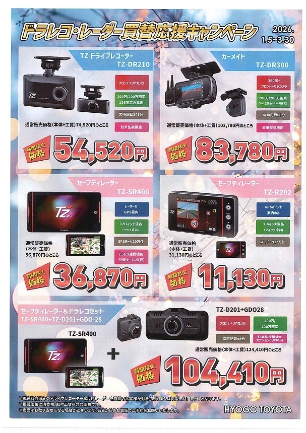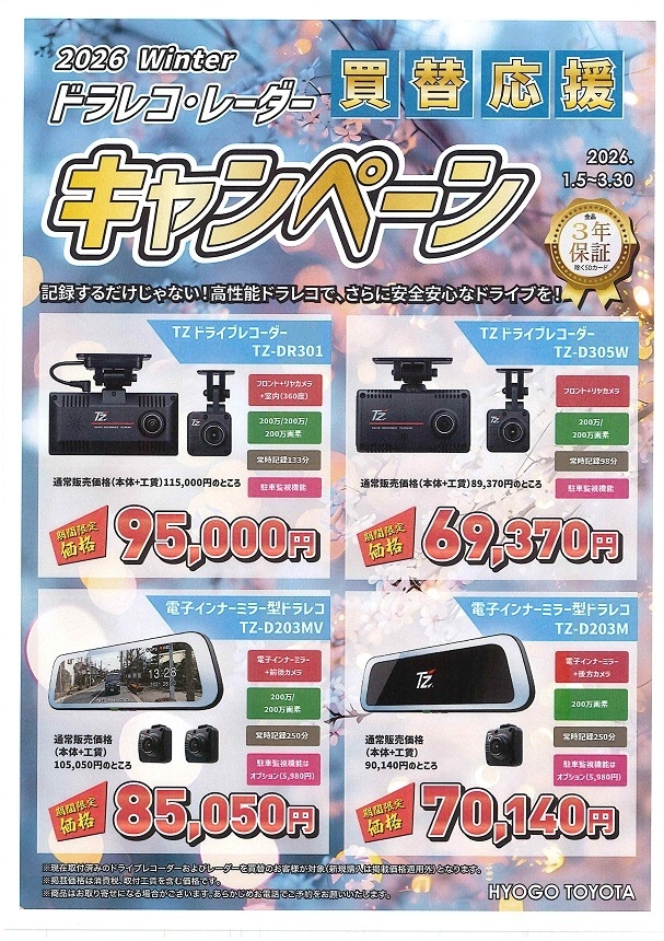 3月30日まで、ドラレコ・レーダー買替応援キャンペーンを実施中です✨✨