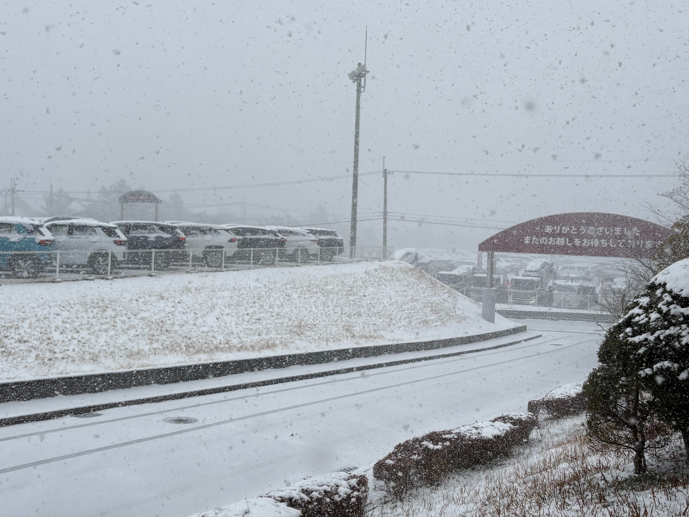 朝出勤したときは、道路が見えていたのですが、、、10分程度で真っ白になりました!