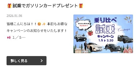 また兵庫トヨタでは独自のキャンペーンとしてbz4xをはじめとする対象車種にご試乗いただくと「ガソリンカード1000円分」を皆様にプレゼントしております!🎁✨(数に限りがあります)