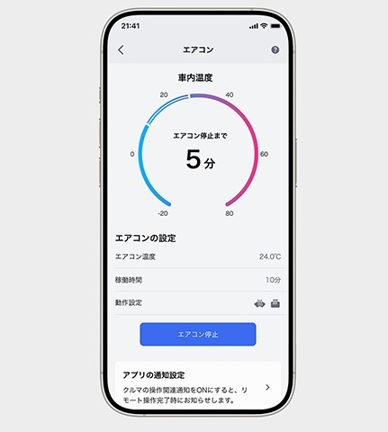 スマホアプリ「My TOYOTA+」であらかじめエアコンを起動する時間を設定できます。設定した時間に自動でエアコンが起動するため、手間なくご利用いただけます😊