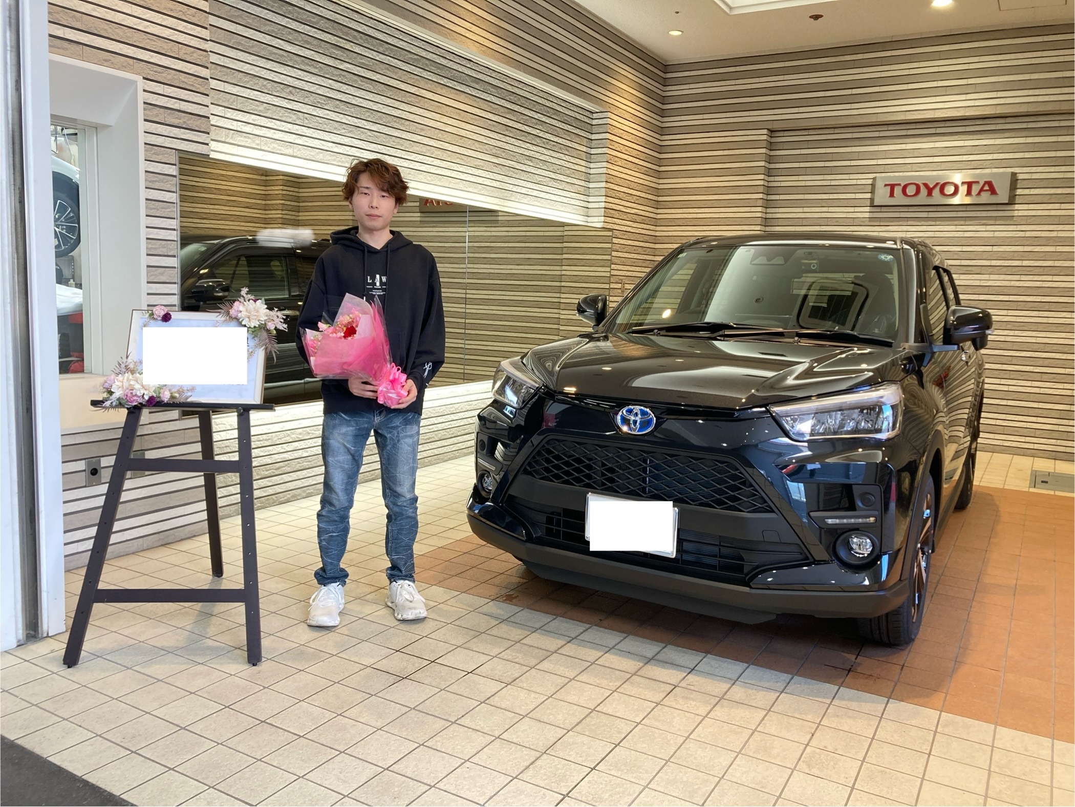 『この度は、初めてのマイカー”ライズ”ご納車おめでとうございます💐いつもご家族共々たいへんお世話になっておりありがとうございます。コンパクトですが、とてもカッコイイ一台のライズでいろいろお出かけされ、たくさん思い出をつくってください♪♩』