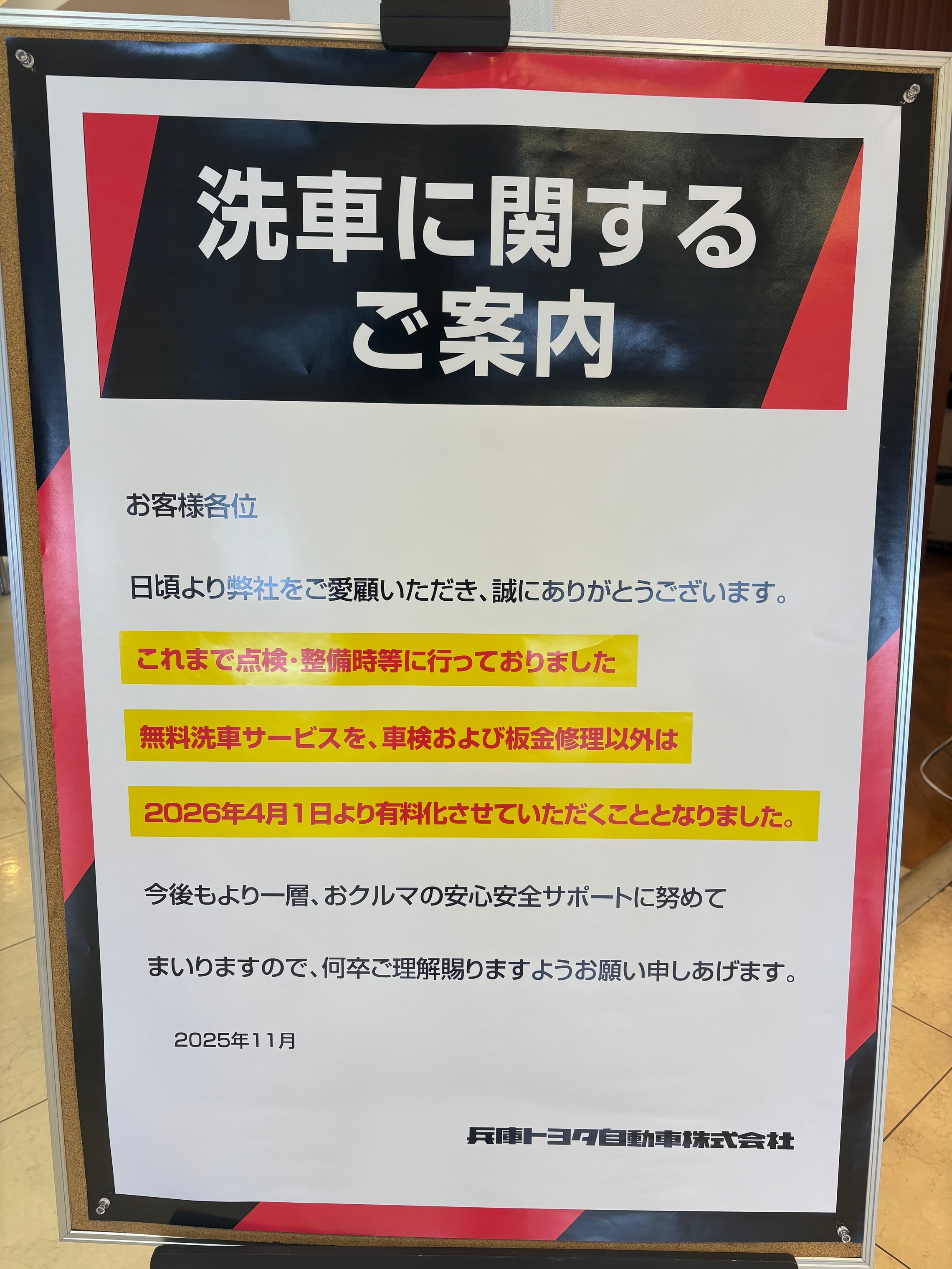 また、同日から洗車の料金の改定もございますのでお知らせいたします。