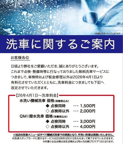 また、洗車の料金につきましても改定させて