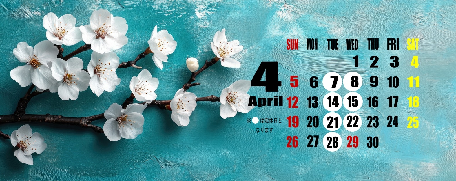 4月は毎週火曜と第2・第3水曜の定休日に加え、