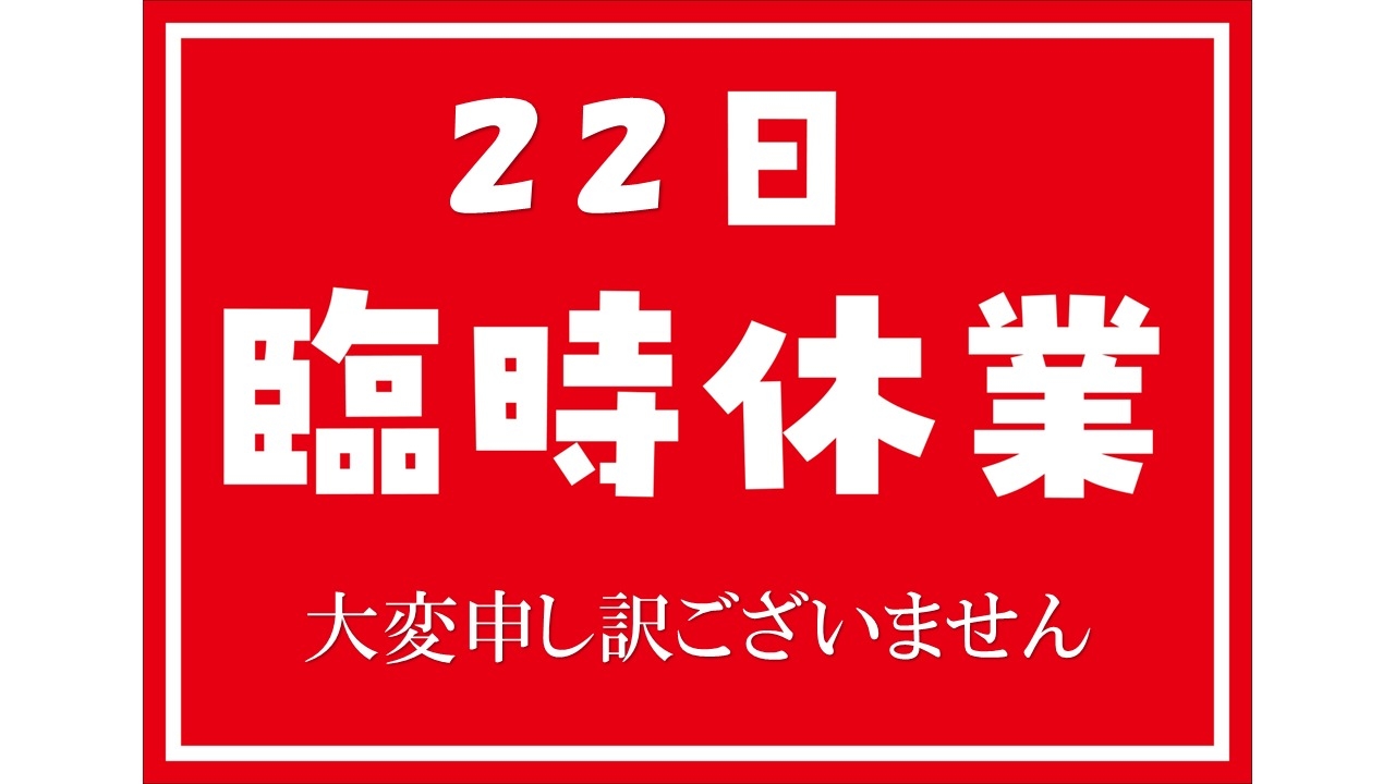 ---臨時休業のお知らせ--- 2026.04.17 いつも大久保店のブログをご覧いただきありがとうございます😁 本日は臨時休業のお知らせです。 誠に勝手ながら4/22(水)を臨時休業とさせていただきます。 店舗休業中に緊急を要する場合はご加入のJAF・ロードサービスへご連絡ください! ご不便をおかけ致しますが何卒ご理解賜りますようお願い申し上げます。 前の記事へ 店舗ブログ一覧に戻る 次の記事へ
