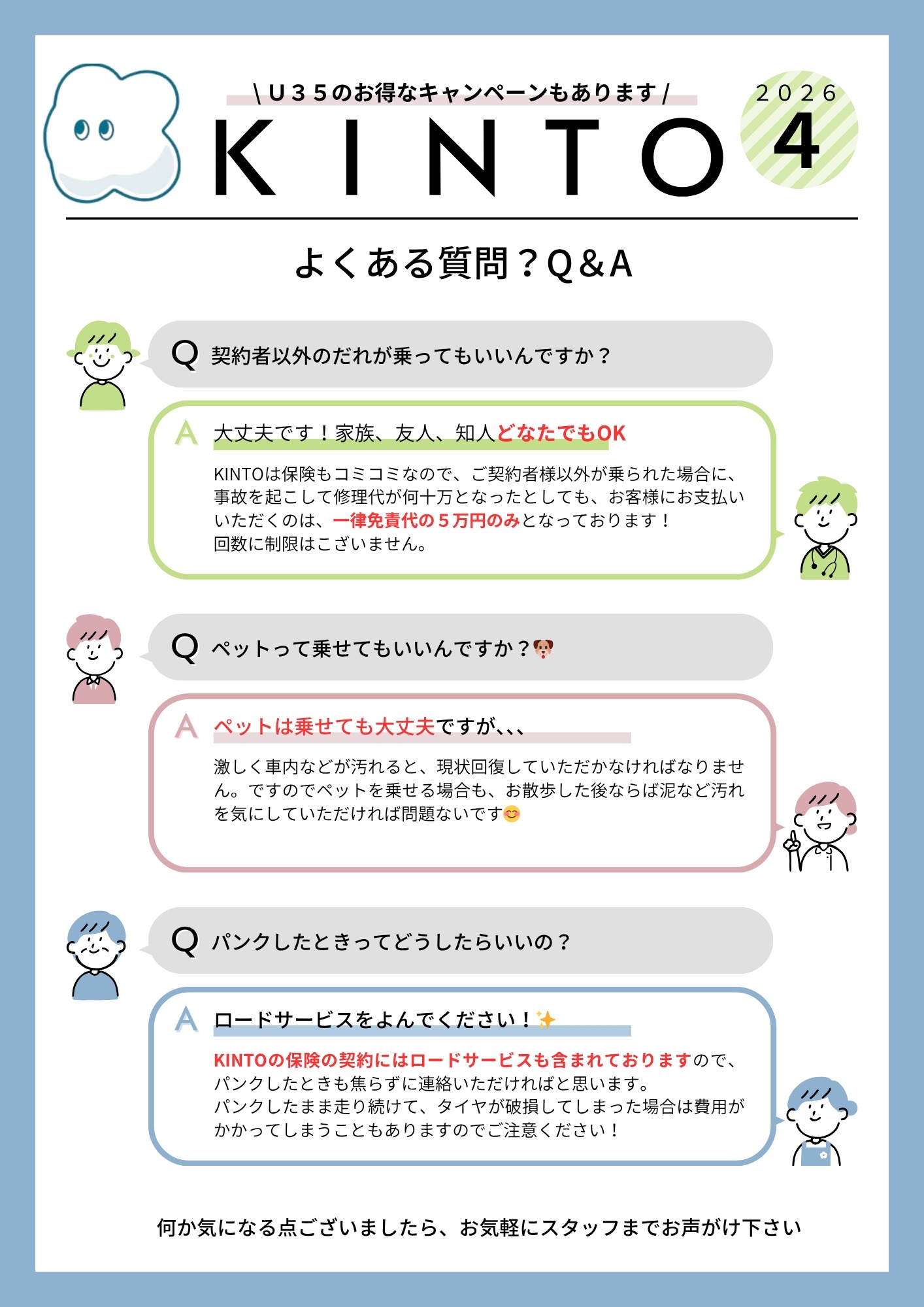 そんなKINTOのことで、よく聞かれる質問にお答えいたします😊