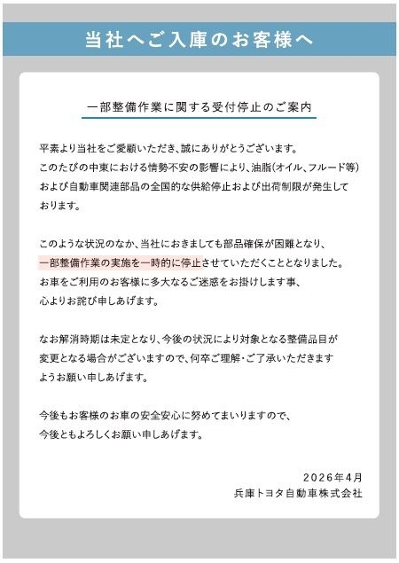 本日は整備に関する大切なお知らせがございます。