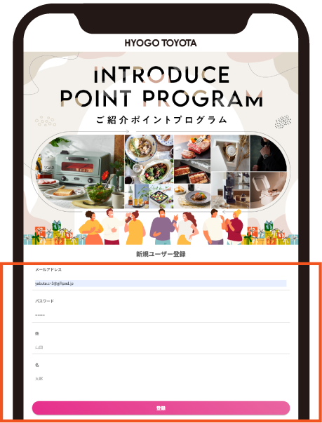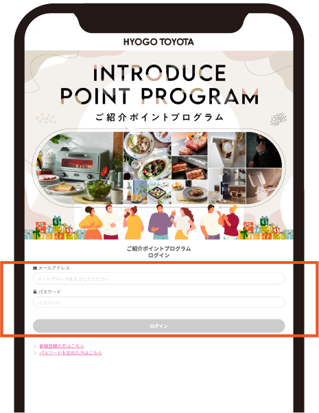 「ご紹介ポイントプログラム」にご登録ください。(①②は順不同)