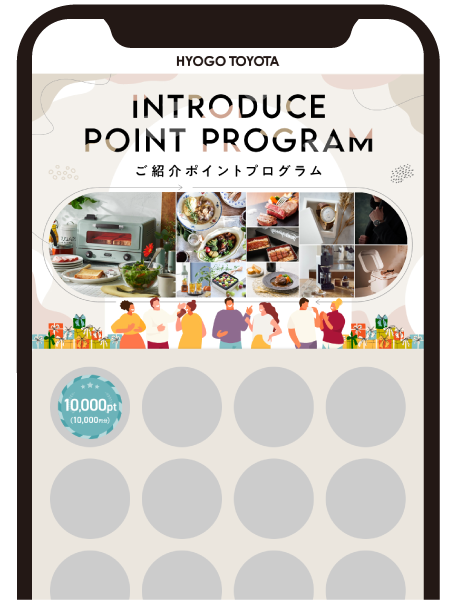 - どなたでもご参加いただけます。ご紹介される方は、兵庫トヨタを初めてご利用される方が対象となります。ただし同居家族間のご紹介は対象外です。