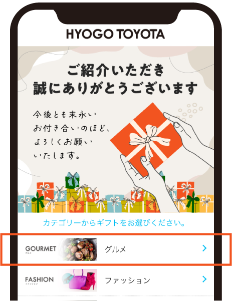 兵庫トヨタの担当者へ、お車のご購入を検討されているお知り合いをご紹介ください。(兵庫トヨタを始めてご利用いただく方が対象となります。)