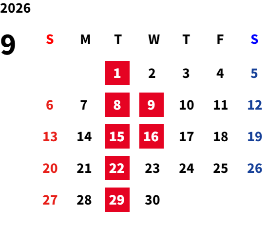 火曜日・第2水曜日・第3水曜日